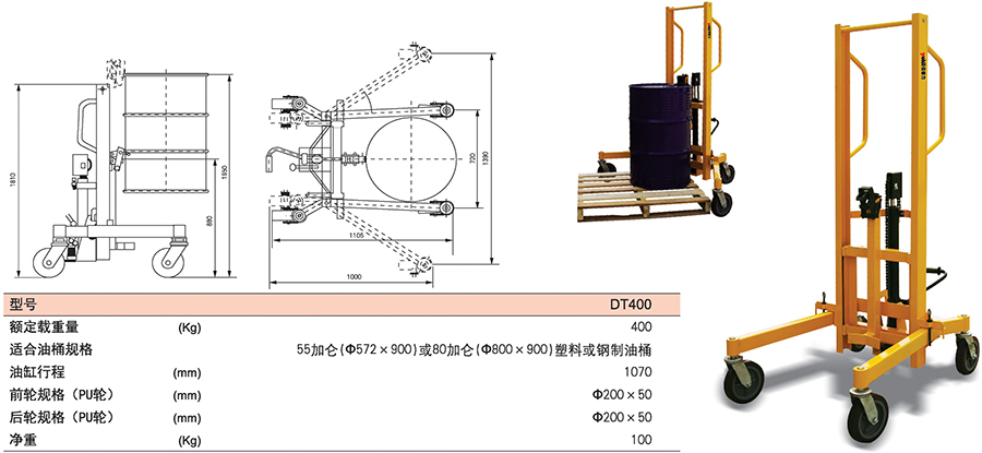 DT型高起升液壓油桶搬運(yùn)車